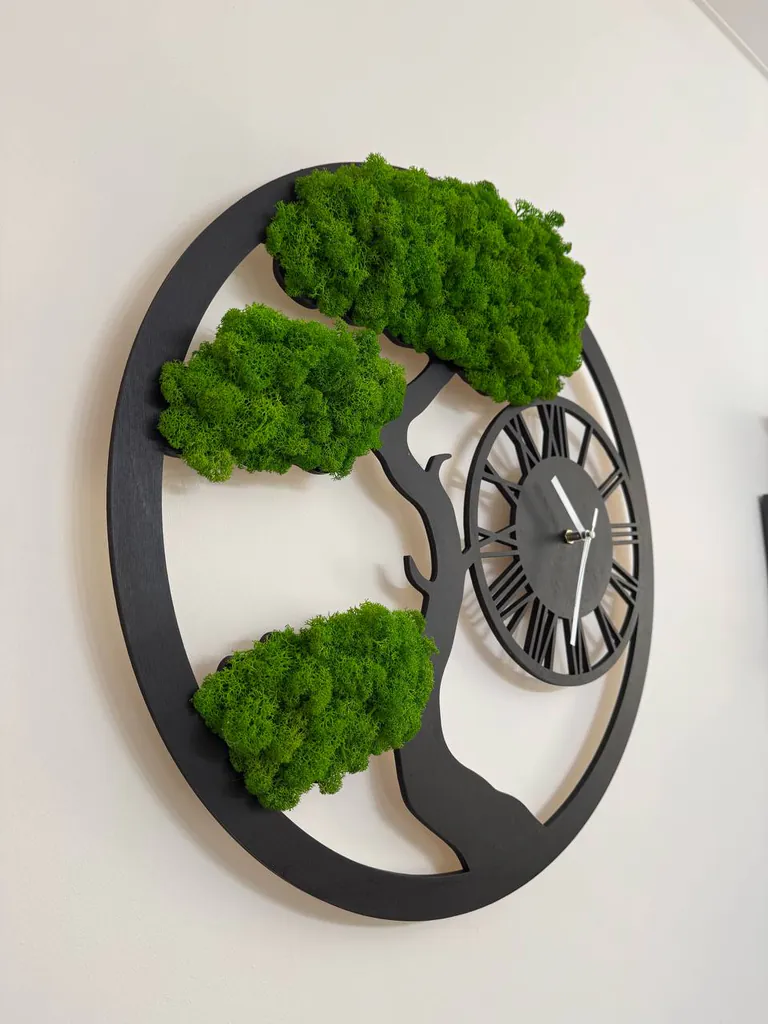 Elke Ekomoss Eco-klok is een handgemaakt uniek exemplaar van hoogwaardig multiplex of MDF, wat zorgt voor stabiliteit en duurzaamheid. Het hoofdkader in de vorm van een boom is verkrijgbaar in elegante kleuren zwart, wit of bruin, zodat u het perfect kunt aanpassen aan uw interieur. De fijne afwerking van het houtdecor zorgt ervoor dat elke tak en elk detail van de boom optimaal tot zijn recht komt en een harmonieuze eenheid vormt met de wijzerplaat. Deze mosklok is een bewijs van onze toewijding aan vakmanschap en details.