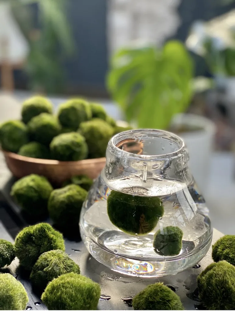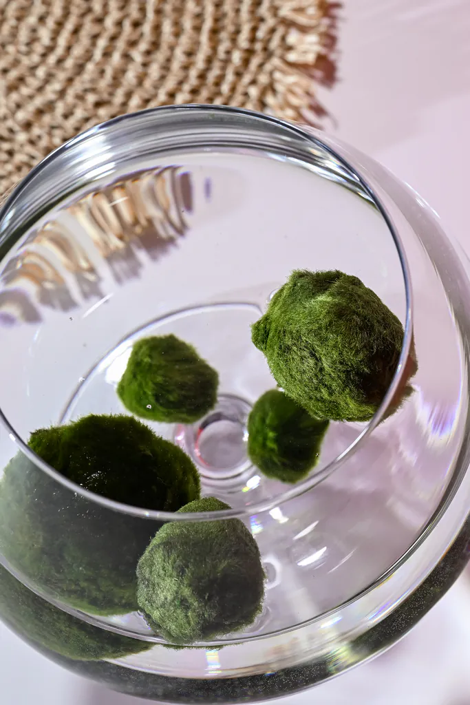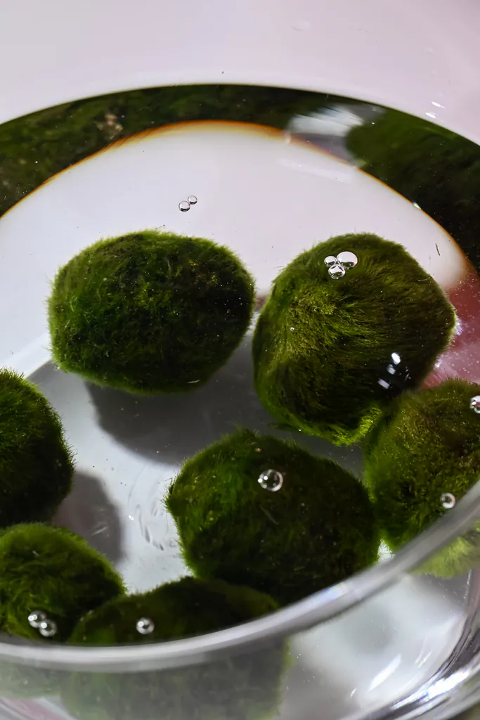 Vorm behouden: omdat de marimo in de natuur rolt door de stroming, is het goed om de bal af en toe tussen je handen te rollen. Zo krijgt elke kant voldoende licht en blijft de ronde vorm behouden.