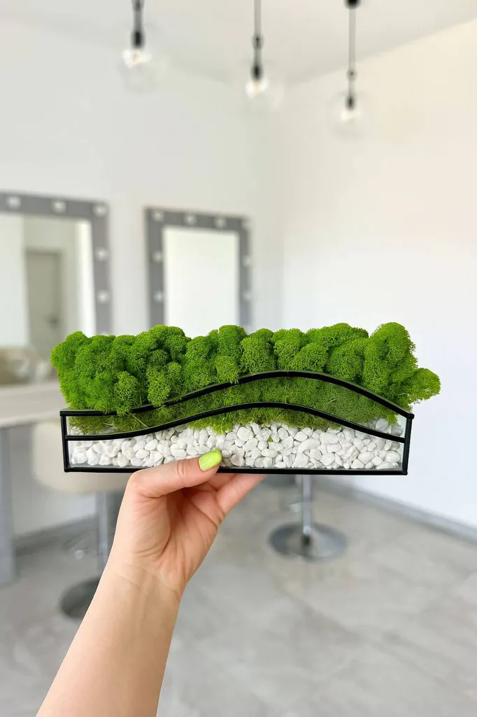 Mos in glas met witte stenen โ Kleurenoase