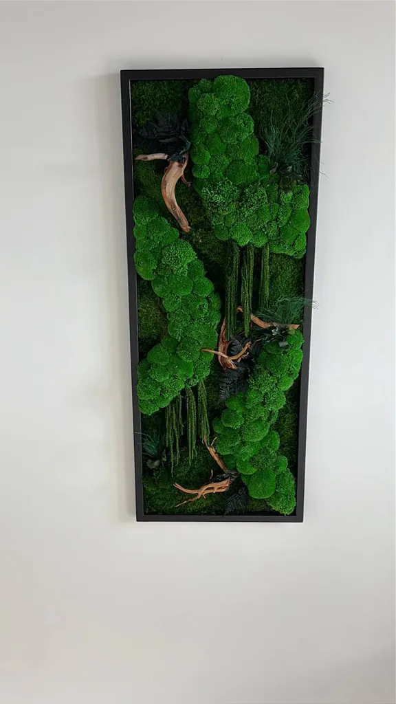 Een stevig frame dat de frisse groene structuur elegant omlijst en het verticale ontwerp benadrukt