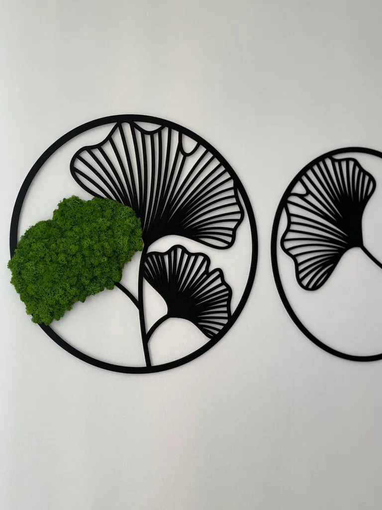 Voor liefhebbers van een minimalistische of Scandinavische woonstijl en voor iedereen die zich graag door de natuur laat inspireren, presenteren wij met plezier ons nieuwe ontwerp: de Ginkgo mos wanddecoratie – set van 3. De gestileerde Ginkgo-bladeren in ronde lijsten, gecombineerd met echt, onderhoudsvrij rendiermos, creëren een harmonieuze combinatie van natuurlijke esthetiek en modern wooncomfort.