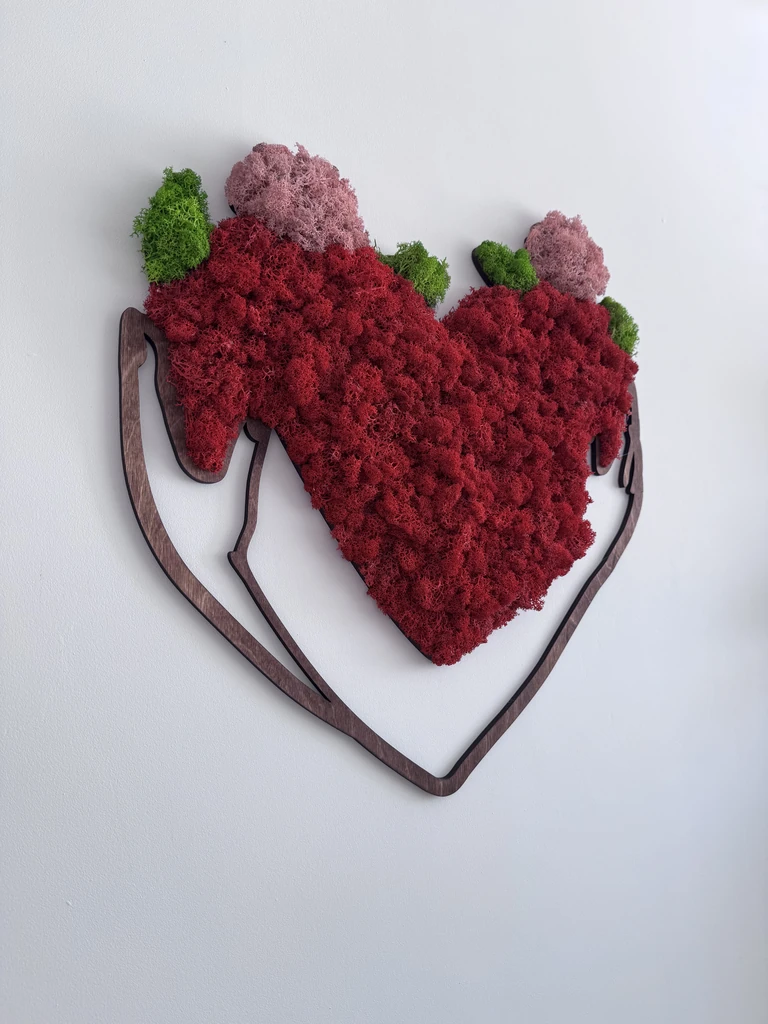 Wie een mos hart koopt, kiest voor een duurzaam kunstwerk van echt, geconserveerd mos dat in verschillende kleuren verkrijgbaar is โ groen, rood, roze, blauw of geel. Zo kun je het perfect afstemmen op je interieur of evenement.
