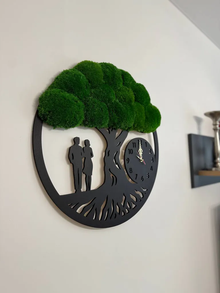 Mos Wandklok Levensboom met Paar – Een symbool van eeuwigheid en verbondenheid