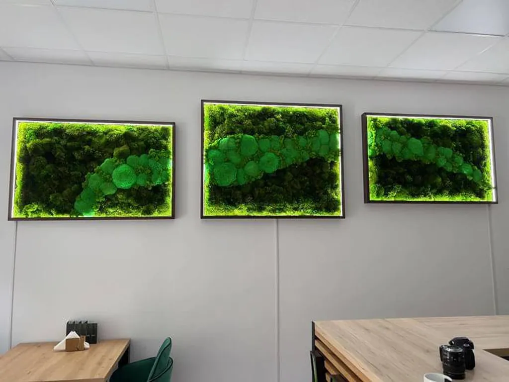 Een Set van mos schilderijen met verlichting kopen is een uitstekende keuze voor elke ruimte. Moswanden zijn niet alleen esthetisch aantrekkelijk, maar ook functioneel, omdat ze bijdragen aan een beter binnenklimaat. Mosafbeeldingen bestaan uit bolmos en Provence-mos, wat zorgt voor een unieke structuur en uitstraling. Elke wanddecoratie is een uniek stuk en brengt een natuurlijke sfeer in uw woon- of kantoorruimte.