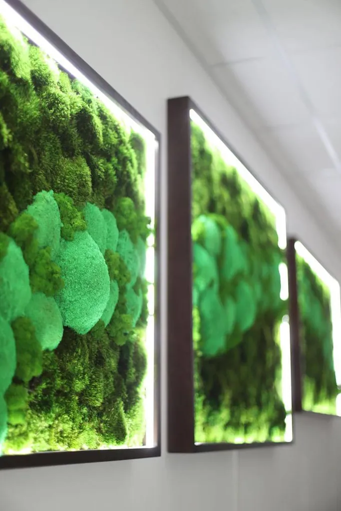 Groen decoreren van ruimtes en kantoren met Set van mos schilderijen met verlichting