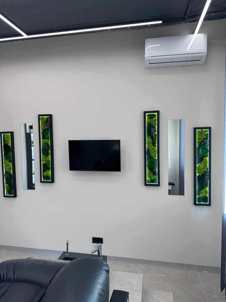 De spiegelpanelen voegen een extra dimensie toe: ze vergroten optisch de ruimte, reflecteren licht en versterken de natuurlijke uitstraling van de mos-schilderijen. Door de combinatie van mos en spiegel ontstaat een veelzijdig, functioneel kunstwerk dat zowel in woonkamers, slaapkamers, kantoren als ontvangst- of gangenruimtes kan worden gebruikt.
